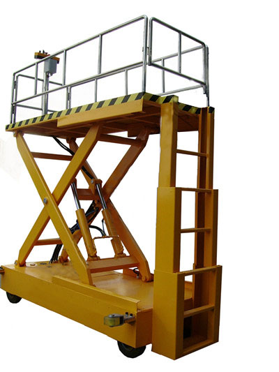 液壓升降臺(tái)加裝軌道輪和行走驅(qū)動(dòng)程序機(jī)構(gòu),以實(shí)現(xiàn)升降臺(tái)在軌道上行走。可選動(dòng)力:人工動(dòng)力;交流電源、直流電源。升降臺(tái)可滿足大負(fù)載量要求。
